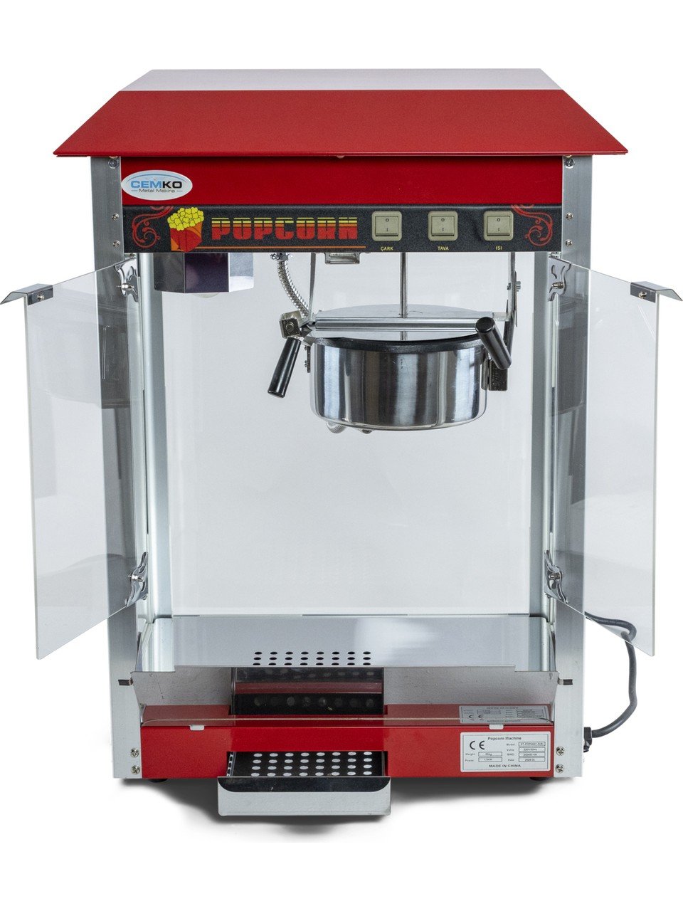 Cemko Metal’in Popcorn Mısır Patlatma Makinesi Sanayi Tipi Profesyonel (Model Gönen), sinema salonları, kafeler ve eğlence mekanları gibi yoğun ticari işletmeler için tasarlanmış, saatte 4 kg mısır patlatma kapasitesine sahip yüksek performanslı bir cihazdır. Paslanmaz çelik tava ve gövdesiyle dayanıklılık ve kolay temizlik sunarken, 50 cm genişliğinde ve 36 cm derinliğindeki geniş tavası, kolayca çıkarılıp takılabilen kırılma riski düşük cam kapakları, alt ısıtma sistemiyle mısırları taze ve sıcak tutma özelliği ve üst aydınlatma lambasıyla hem estetik hem işlevsel bir deneyim sağlar. Kullanıcı dostu üç düğmeli kontrol paneli sayesinde sıcaklık, tava ve karıştırma çarkı kolayca yönetilir, birkaç dakikada mısır, yağ ve tuz karışımıyla hızlı üretim yapılır. Çıkarılabilir parçaları elde veya bulaşık makinesinde yıkanabilir. CE sertifikalı bu makine ücretsiz kargo ve 12 taksit imkanıyla indirimli fiyatlarla sunulur ve profesyonel kullanım için ideal bir çözümdür. Özellikle büyük popcorn makinesi sanayi tipi arayanlara en önemli tavsiyemizdir.