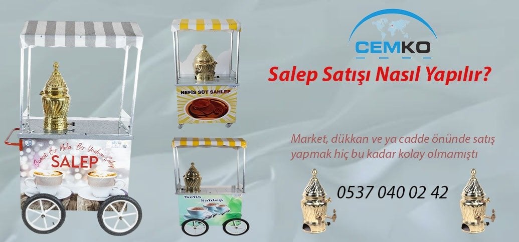 Salep satışı yaparken en önemli unsurlardan biri, salebin sıcaklığını ve lezzetini koruyacak kaliteli salep arabası ve kazan sistemidir. Cemko Metal olarak bizde hem salep arabalarının tüm modelleri hem de bu arabalarla uyumlu salep kazanları bulunmaktadır. Bu ürünler, profesyonel satış yapmak isteyenler için hem pratik hem de dayanıklı çözümler sunar. Ürettiğimiz salep arabaları, paslanmaz çelik gövdeleriyle uzun yıllar dayanıklılık sağlar.